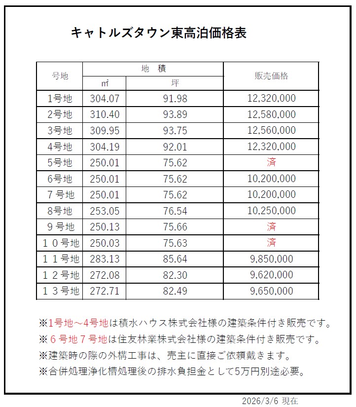 1~13号地(株)フォーティーンの外構工事条件付き